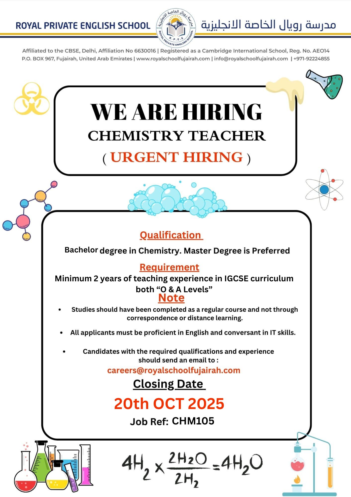 CHEMISTRY TEACHER - URGENT HIRING | VIEW DETAILS |