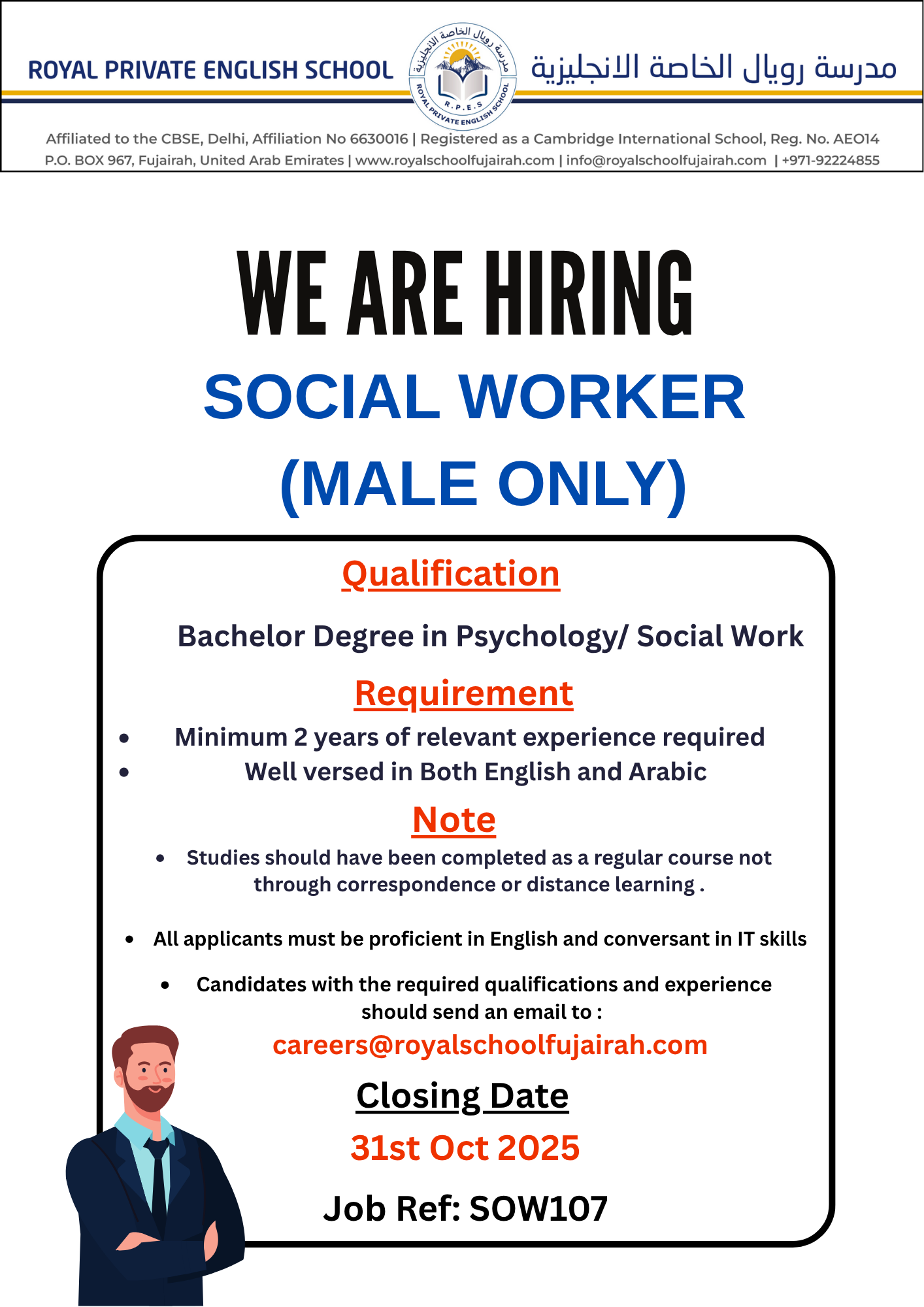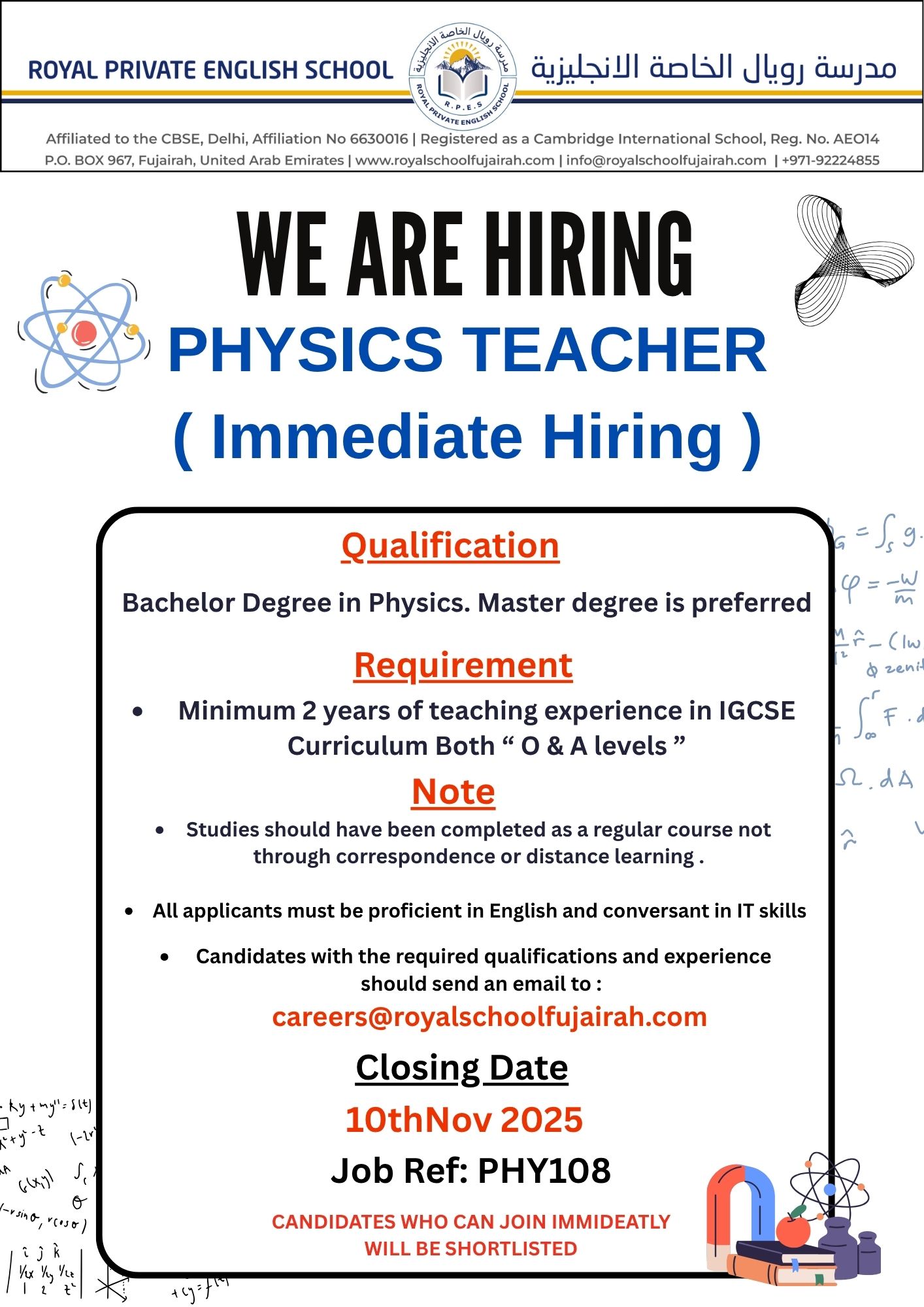 Forward all resumes to careers@royalschoolfujairah.com