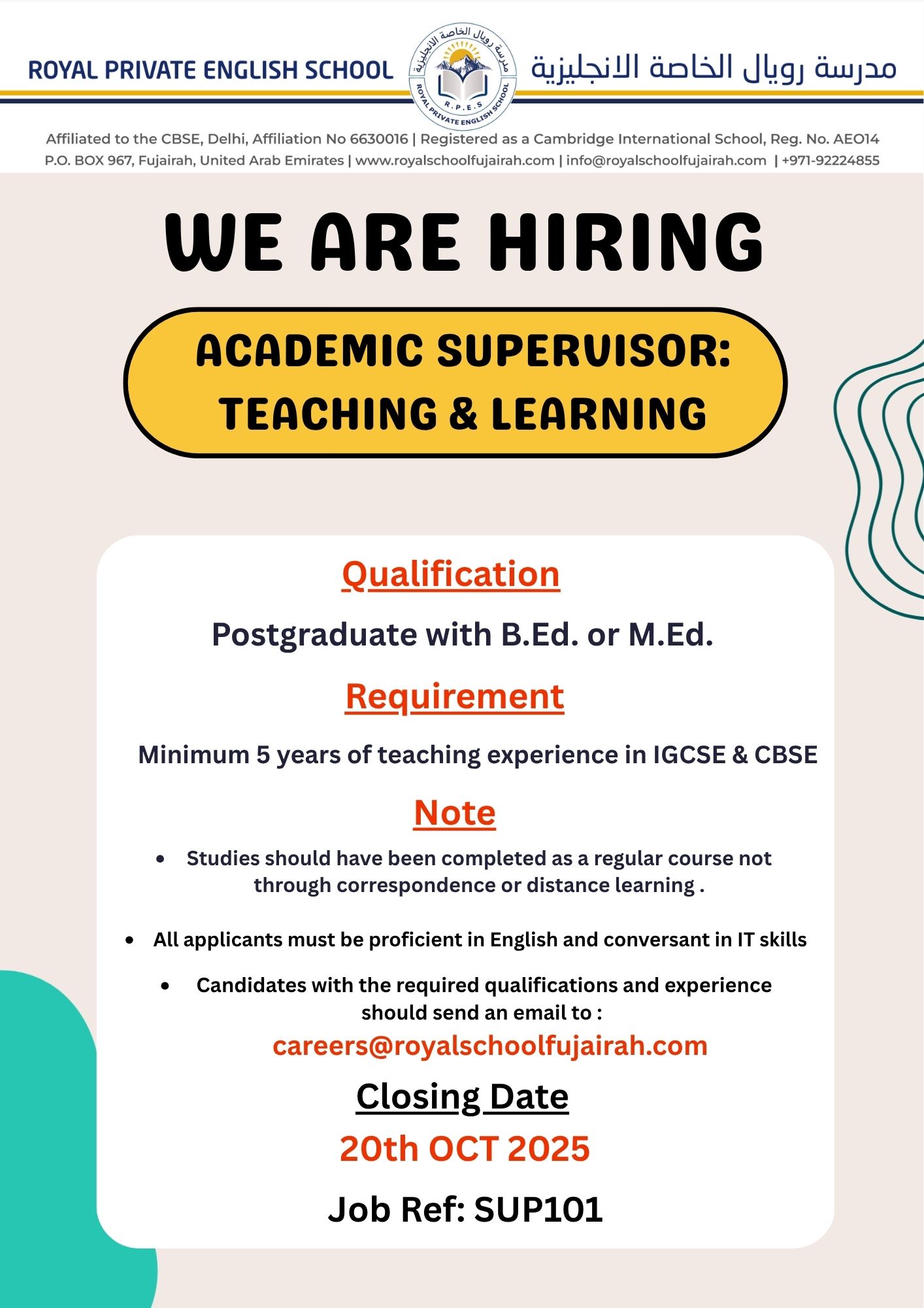 ACADEMIC SUPERVISOR - TEACHING & LEARNING | VIEW DETAILS |